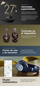 Longer listening time – up to 40 hours of total battery life. A 10-minute quick recharge provides up to 4 hours of additional playback.